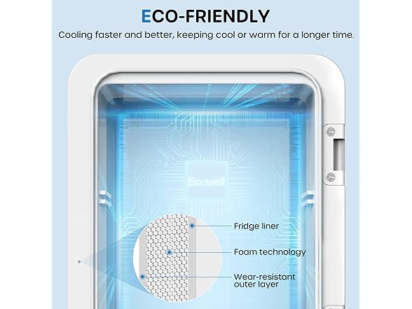 - GREAT INSULATION: ECOWELL beverage refrigerator door uses 4MM thickened and high elastic seal, and the mini dorm refrigerator middle layer adopts polyurethane foam technology, longer service life, and integrated molding without seams, reducing the formation of water beads, cooling or heating faster, keeping cool or warm for a longer time.