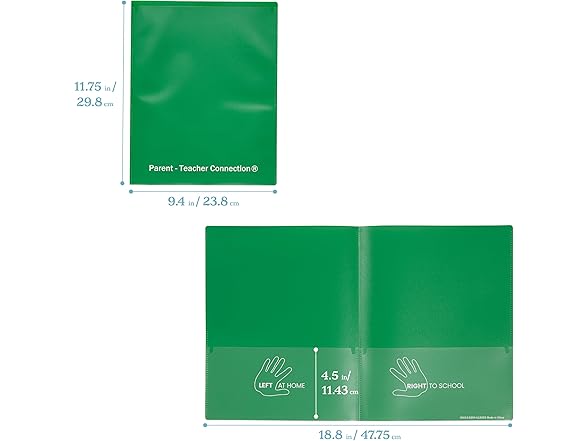 - Product Dimensions: Communication folders for school measure 9.4" x 11.75" each; interior clear pocket measures 4.5” H; Adult Active Engaged & Direct Supervision Required