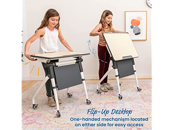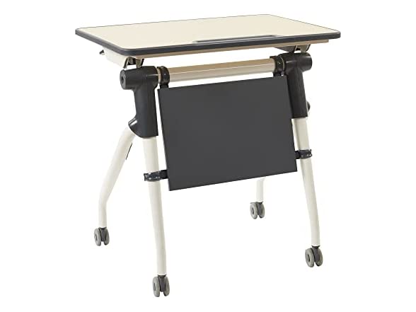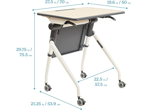 - Compact Design: Adjustable levers on either side let you flip the work surface up and down; nest multiple desks together for convenient storage and to maximize space