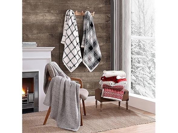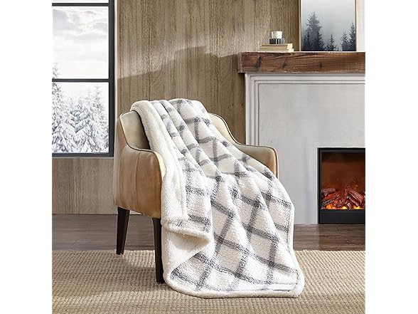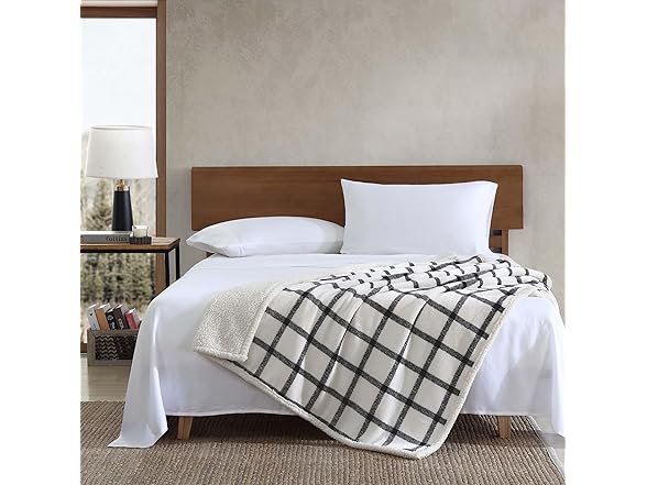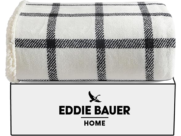 Eddie Bauer - Blanket, Super Soft Reversible Sherpa & Brushed Fleece Bedding, Throw Blankets for Couch, Ideal for Lounging (Bunkhouse Beige/Charcoal)