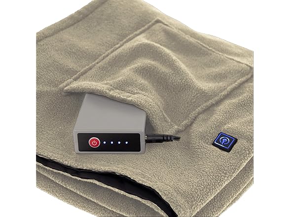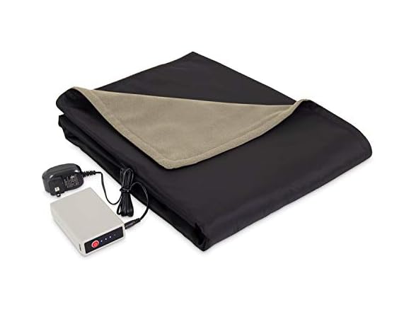 Eddie Bauer - Heated Throw Blanket, Water Resistant Throw with Warming Pocket & Rechargeable Battery, Weather Smart Fleece for Travel, Camping, and Outdoor Use (Khaki/Black)