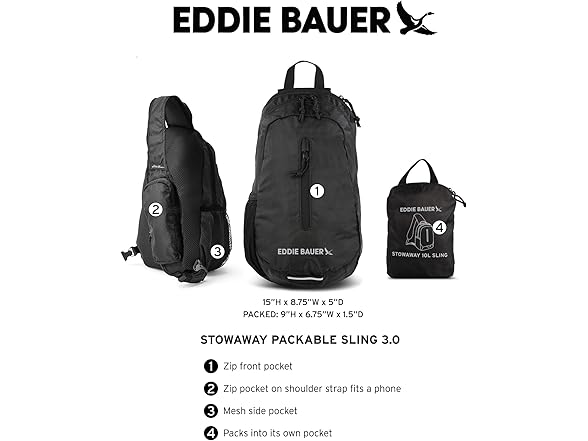 Eddie Bauer Stowaway Packable Sling Bag | Foldable | Travel | Outdoor | Lightweight | Compact | Everyday Carry | Ripstop Nylon | 10L - Port Red
