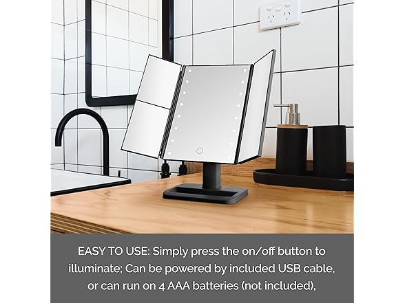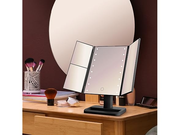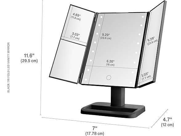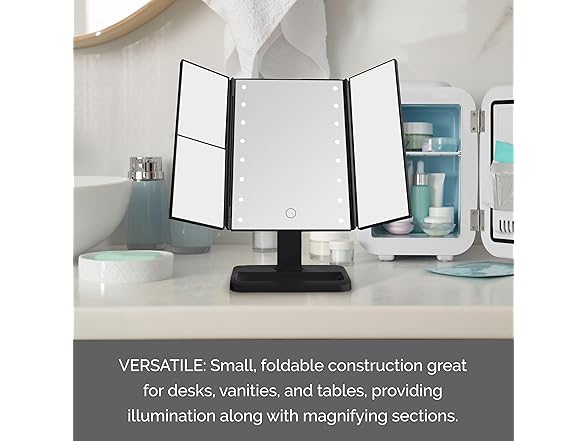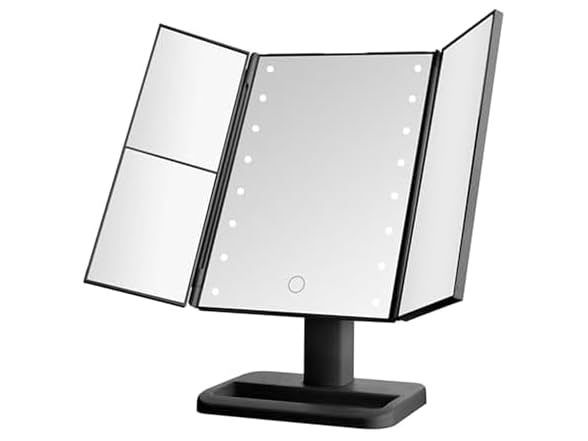 Elements Tri Fold LED Vanity Mirror, 3 Magnifications and Dimmable LED Lights, 7.09x4.69x11.61 Inch