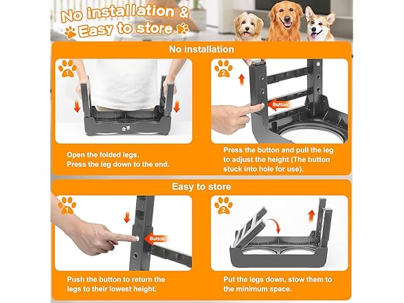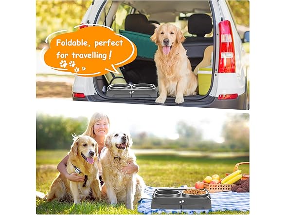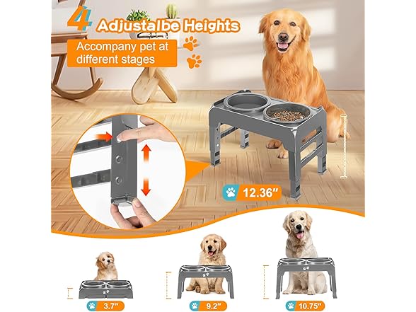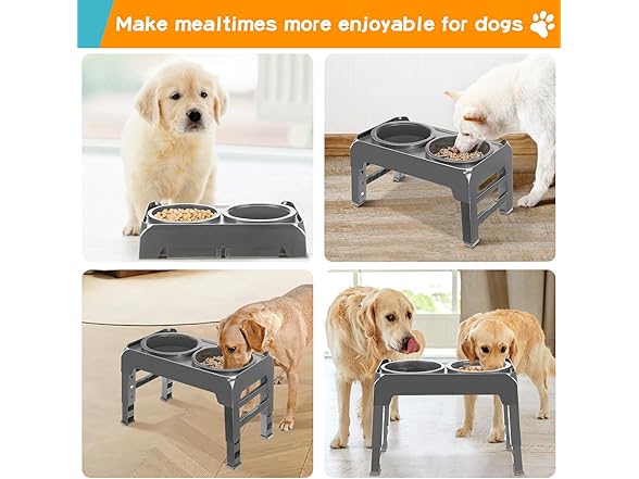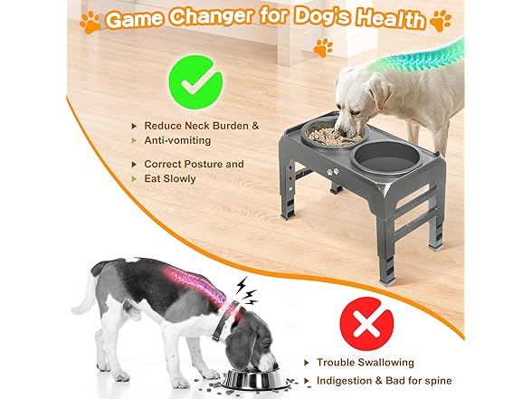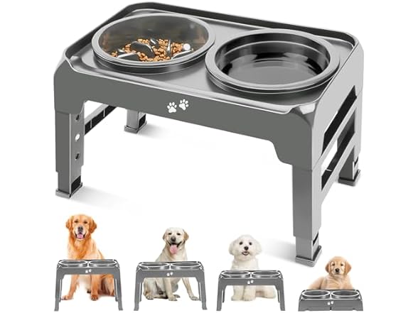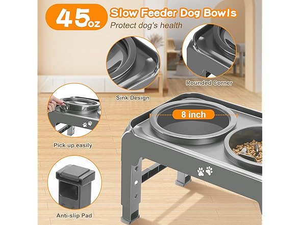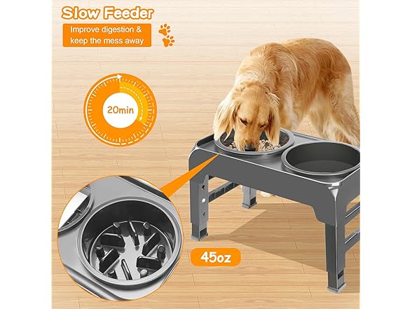 Elevated 2-in-1 Dog Feeder - Adjustable Raised Dog Bowl Stand with Non-Slip Slow Feeder & Water Bowl for Medium Large Dogs, Grey