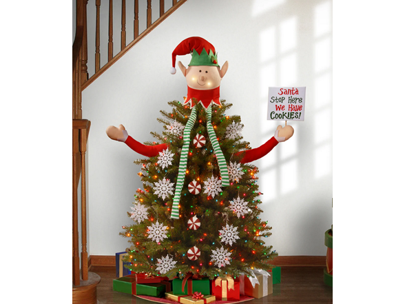 National Tree Company Elf Tree Kit- 1 pc Elf Head with Scarf, 2 Arms holding Sign, 4 pcs Candy & 12 pcs Snowflakes-Normal Packing