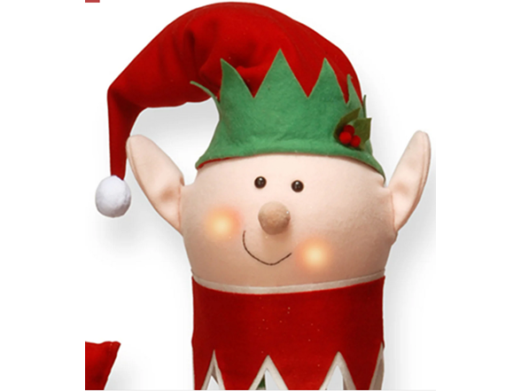 The Elf Tree Dress Up Kit a fun and festive way to decorate your tree! It adds a playful touch that’s perfect for the holiday spirit. Included is a round poly-foam Elf head sporting a red cap and collar with a long flowing green and white striped neck scarf. Two arms in red sleeves extend out with a sign to Santa in one hand. Four candy ornaments serve as buttons and twelve snowflakes are included for added decoration. This cheerful kit can be used on both real or artificial trees. For indoor use only.