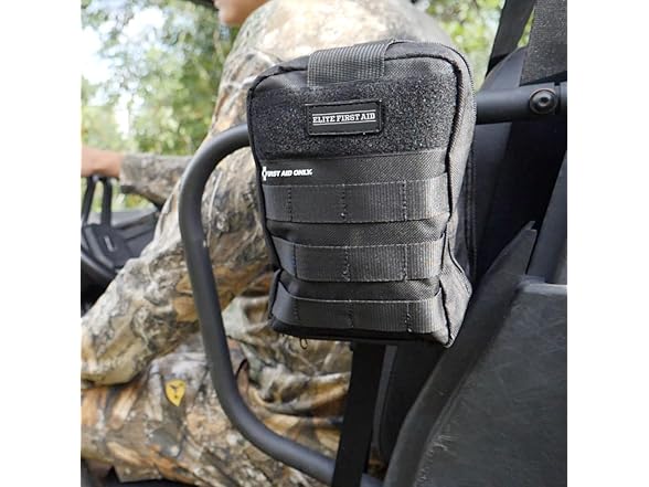 - MOLLE First Aid Pouch: This MOLLE-compatible first aid pouch can be easily attached to a headrest for quick access; Three large compartments to keep your first aid kit supplies organized