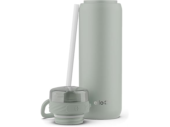 Ello Cooper 22oz Stainless Steel Water Bottle with Straw and Carry Handle, Double Walled and Vacuum Insulated Metal, Leak Proof Locking Lid with Soft Silicone Spout, Reusable, BPA Free, Sage