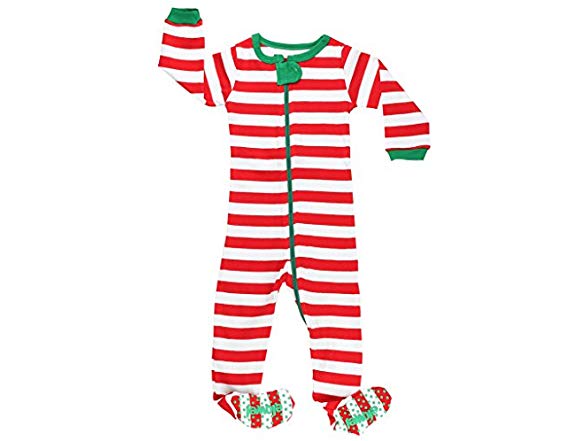 Elowel Striped Pajama Sleeper Set Red & White 2 Toddler