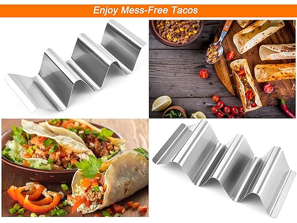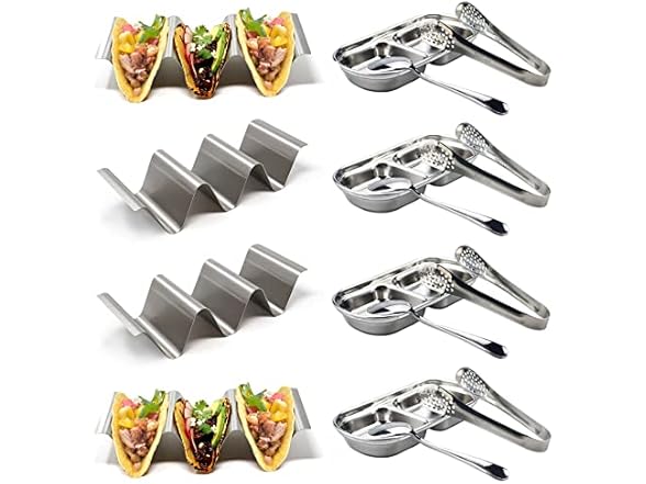 Encoli Taco Holders 4 Packs, Stainless Steel Taco Racks With Handles, Toco Stand Hold up to 3 taco, Oven Grill Dishwasher Safe