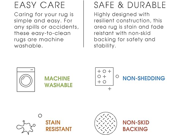 - EASY CLEAN & LOW MAINTENANCE: This easy-clean rug is machine washable, so there's no need to worry about stains and spills.