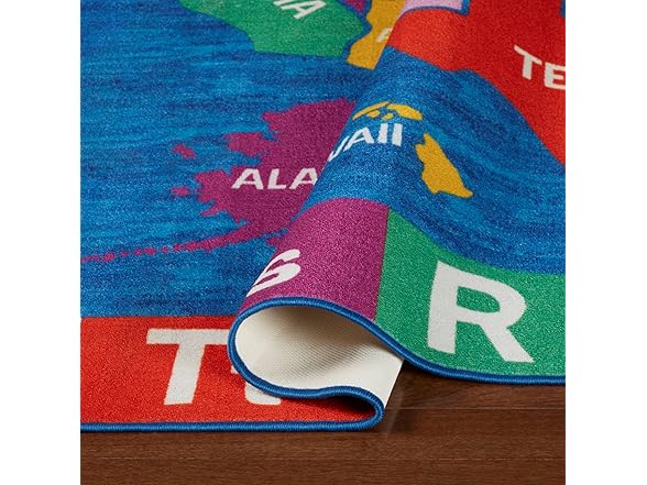 - WELL-CRAFTED WITH NON-SKID BACKING: Made with 100% polyester yarns in a power-loomed construction, this durable, decorative rug is designed to last. A non-skid latex backing prevents slipping and sliding so children can play safely.
