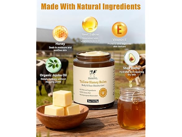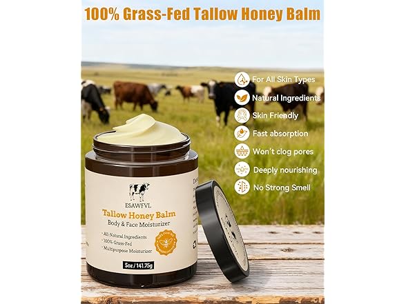 ESAWFVL Beef Tallow Honey Balm for Skin, 5 oz