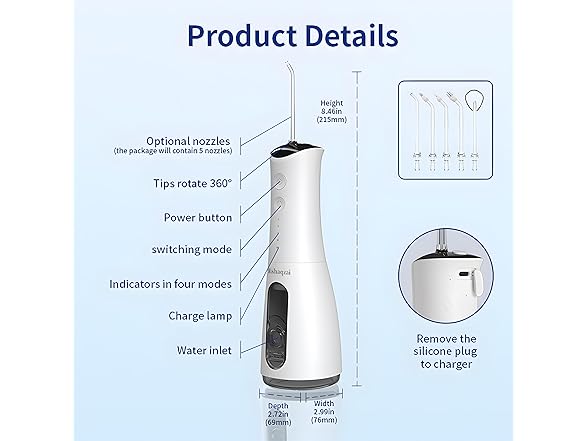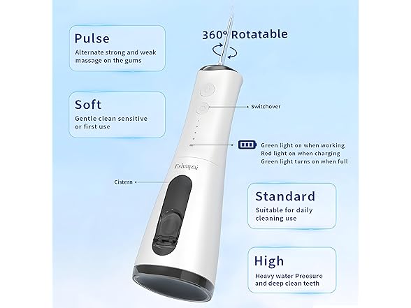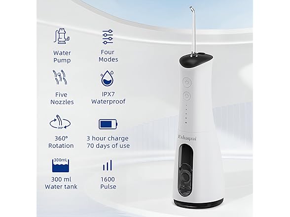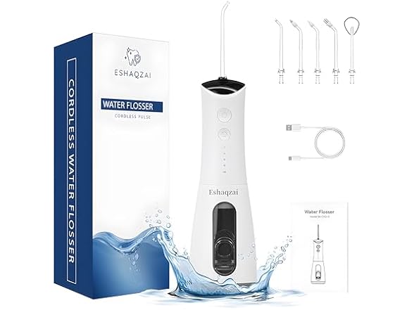 Water Flosser for Adults, Cordless, Waterproof Dental Flosser for Teeth & Gums, Rechargeable Oral Irrigator with 300ml/10oz Water Tank for Plaque Removal & Gum Care