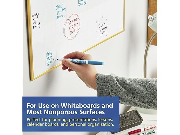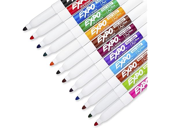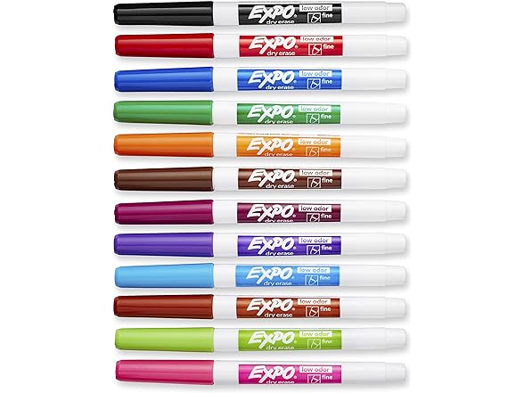 EXPO Low Odor Dry Erase Markers, Fine Tip, Assorted Colors, 12 Count