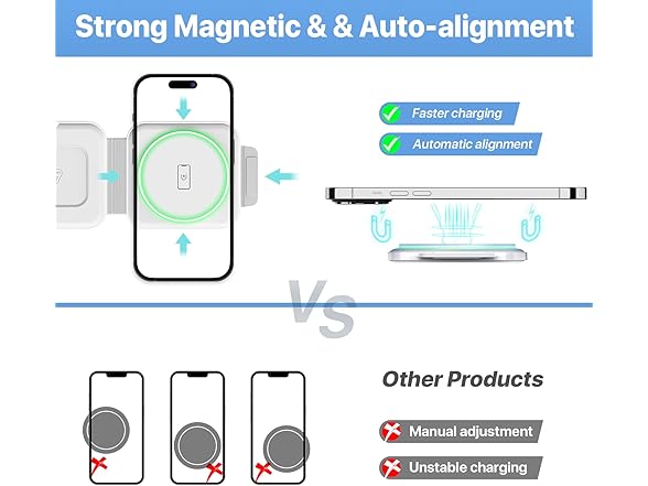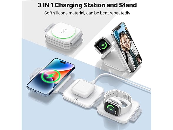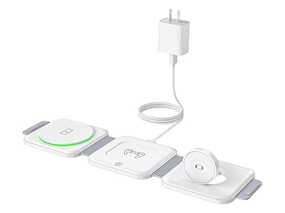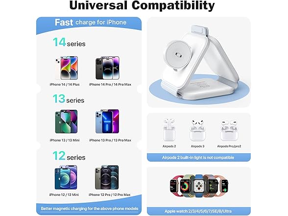 EXW Wireless Charger, Magnetic Foldable 3 in 1 Charging Station, Fast Travel Wireless Charging Pad, Compatible with Magsafe for iPhone 14/13/12/Pro Max/Plus/Mini, Apple Watch and Airpods 2/3/Pro