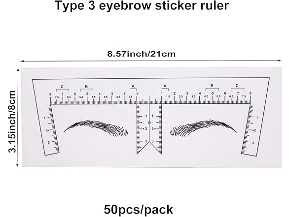 Eyebrow Ruler Stencils-Disposable Ruler Stickers Brow Measuring Shaper Tool Microblading Mapping Sticky Kit Pmu Supplies Stencil Shape Guide 50Pcs Transparent for Makeup (Type3, 8.57x3.15IN)