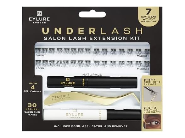 Eylure Underlash Salon Lash Extension Kit, 30 Curl Flares | Includes Bond, Applicator, and Remover | 7 Day Wear