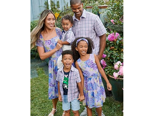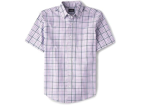 The Children's Place,Mens,Family Matching Short Sleeve Button Down Shirt, Dad and Son,Purple Ging - Adult,Large