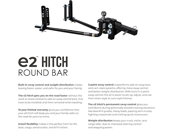 Fastway e2 2-Point Sway Control Round Bar Hitch, 94-00-1033, 10,000 Lbs Trailer Weight Rating, 1,000 Lbs Tongue Weight Rating, Weight Distribution Kit Does NOT Include Hitch Shank Or Ball