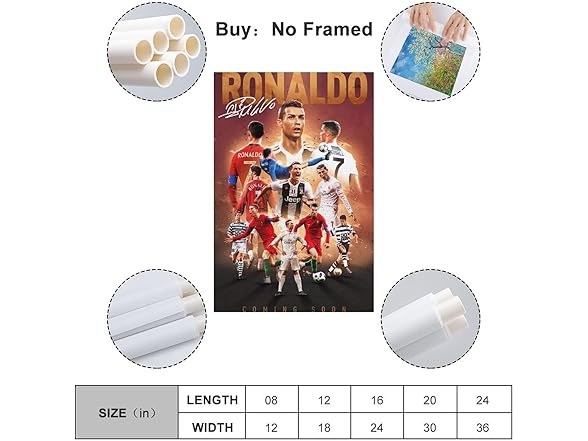 fhzang Cristiano Ronaldo Poster 2 Canvas Poster Unframed: 16x24 inches (40x60cm)