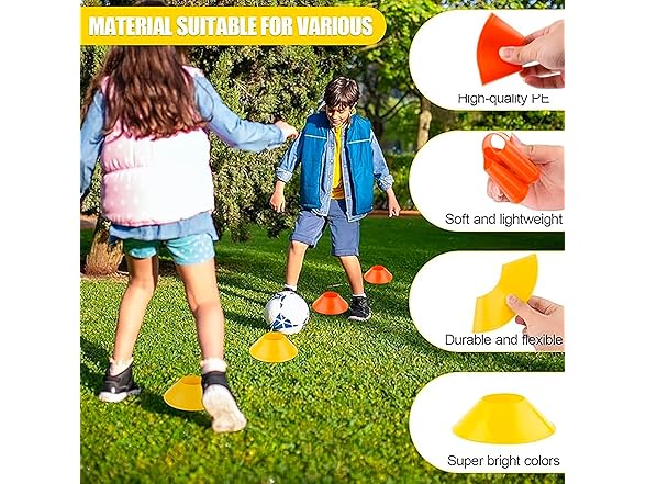 Fifizz 4 Pack Soccer Cones for Sports Training, Football, Soccer, Basketball, Coaching, Practice Equipment, 2 Yellow& 2 Orange,F004
