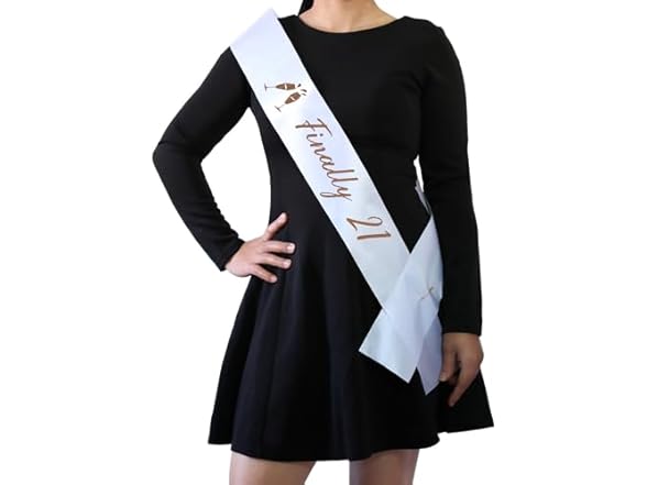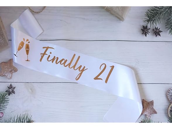 Finally 21 Birthday Sash,White Sash With Rose Gold Foil Lettering for 21st Birthday Party,Birthday Decorations Gifts for Birthday Party Favors,Women's Birthday Gifts