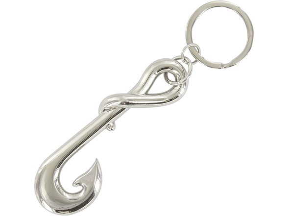 KEYRING BOTTLE OPENER: Perfect for the fishermen and outdoorsmen in your life, this silvertoned fish hook keychain also serves as a bottle opener because it pays to be prepared in the great outdoors.