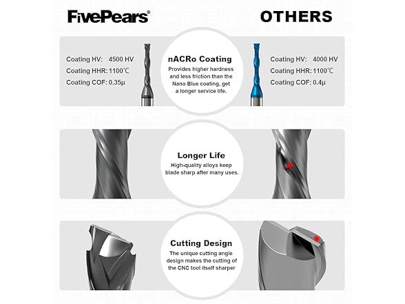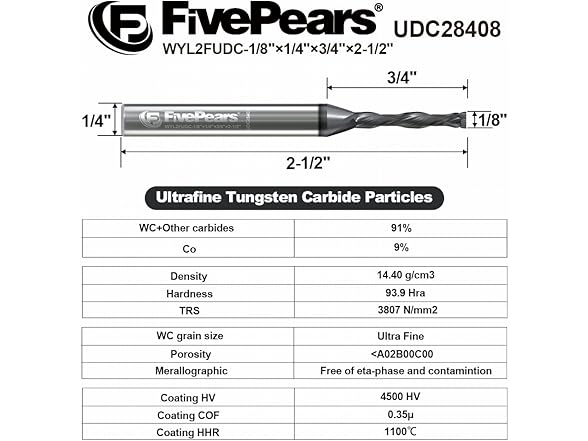- GRADE ROLLING:FivePears' solid carbide spiral Router bits are graded professional grade, industrial grade quality control to ensure the best performance, 91% ultrafine tungsten carbide particles and 9% cobalt content design