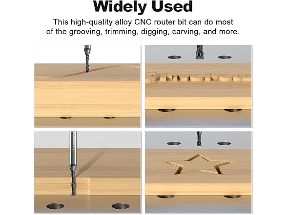 - WIDELY USED:The solid carbide spiral Router bits are suitable for CNC routers and table routers as well as any brand of routers with 1/4" collets. For cutting plywood, OAK, MDF, and any hardwood working and keep sharp after multiple uses