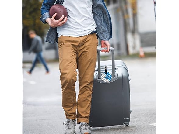 FKHGY - 2 Pack Leather Football Sport Fan Luggage Tag for Suitcase,Double-Sided Pattern Blue White Design Travel Suitcase Tag with Privacy Flap Address Labels