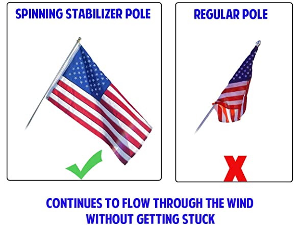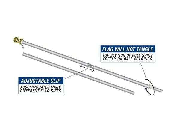 - Includes a mid-section ball joint so that the pole spins freely, and the flag never tangles.