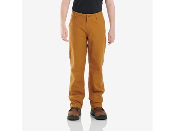 Carhartt Boys 8-20 Washed Flannel Lined Dungaree Pant, Carhartt Brown, 10