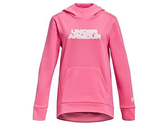 Under Armour Girls Armour Fleece Branded Hoodie, (640) Pink Punk / / White, Youth Large