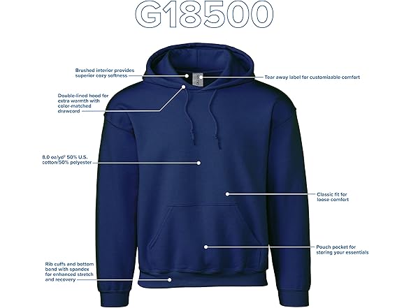Gildan Adult Fleece Hoodie Sweatshirt,Navy, Small