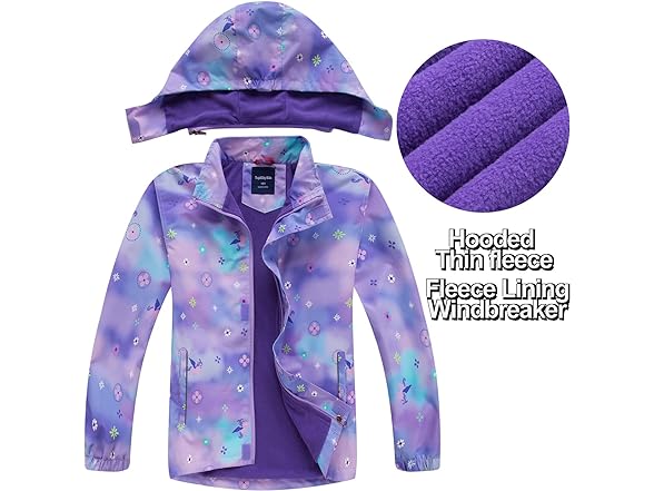 - 【Windproof & Waterproof Jackets】FAFSGOD girl rain jacket is waterproof & windproof, soft & breathable, with fleece lining to keep warm, lightweight. Therefore, it is not only a comfortable and windproof jacket, but also a raincoat for kids on rainy days. The soft fleece lining can also block the cold wind, suitable for outdoor play. The external material helps deflect rainwater, keeping the children dry and able to work normally in rainy days.
