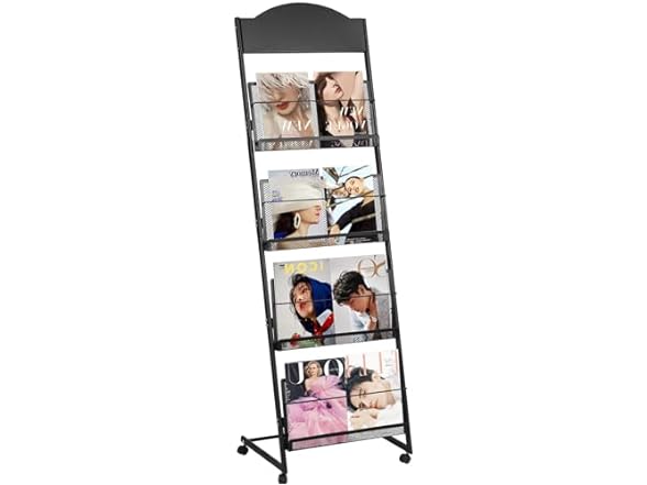 - 📗【Multifunctional】The stylish and simple design allows it to fit into a variety of places. It has five tiers with enough space to store a variety of brochures. Suitable for placement in hospitals, bank lobbies, event rooms, offices, bars, etc. It can store brochures about medical, fashion, catering, etc. With universal wheels at the bottom, high flexibility, easy and effortless to move, it can be moved at will in order to be placed where you want, meeting your diversified needs.