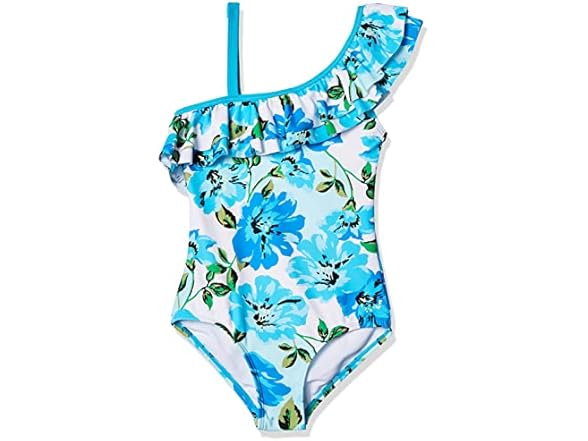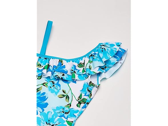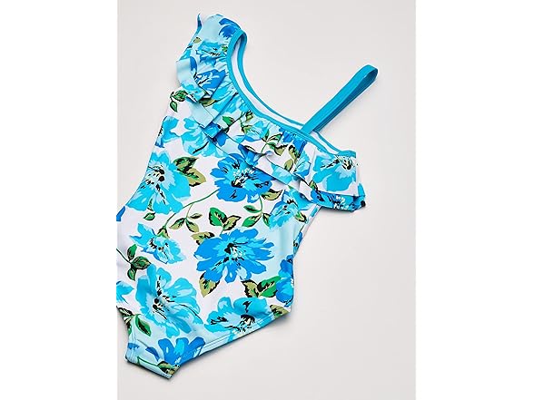 Kanu Surf Girls' Morgan Floral Ruffle 1-Shoulder 1-Piece Swimsuit, Flower Power Blue, 8