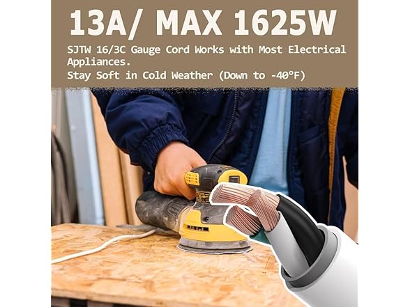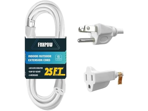FNXPOW Indoor Outdoor Extension Cord 25 FT Waterproof, 16/3 Gauge Heavy Duty White Extension Cords, 13A 1625W SJTW Extension Cord with 3 Prong Grounded Plug, Great for Tools, Lights, UL Listed.