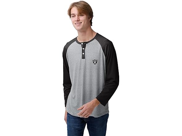 FOCO Men's Nfl Team Logo Long Sleeve Henley Shirt, Gray Team Logo, Large US