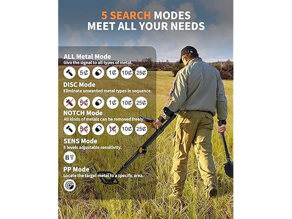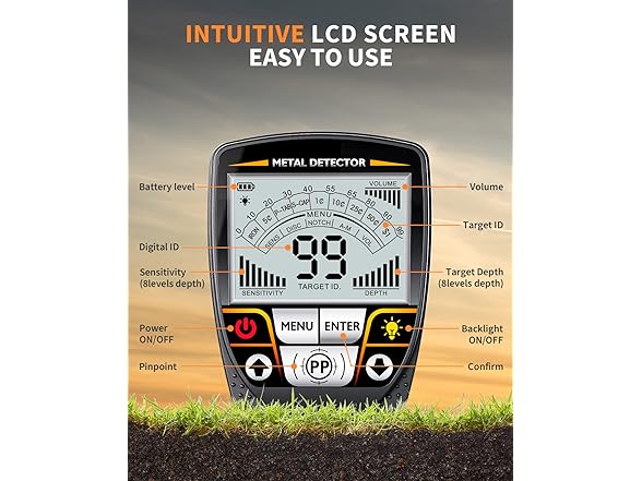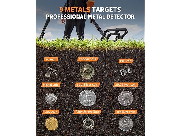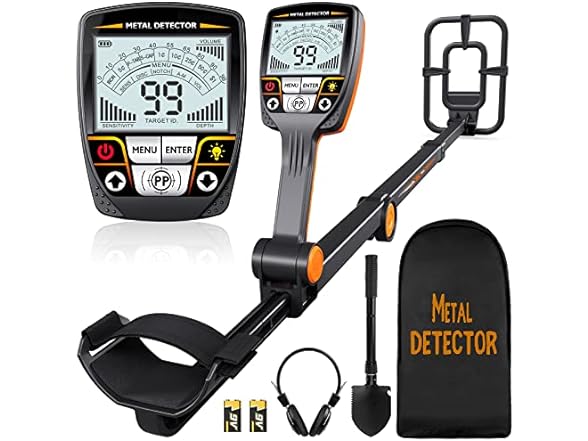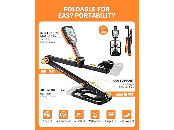 Foldable Metal Detector, Professional Waterproof Gold Silver Detector, Backlit LCD Display, High Accuracy Coil Metal Detectors for Treasure Hunting, Orange (Open Box)