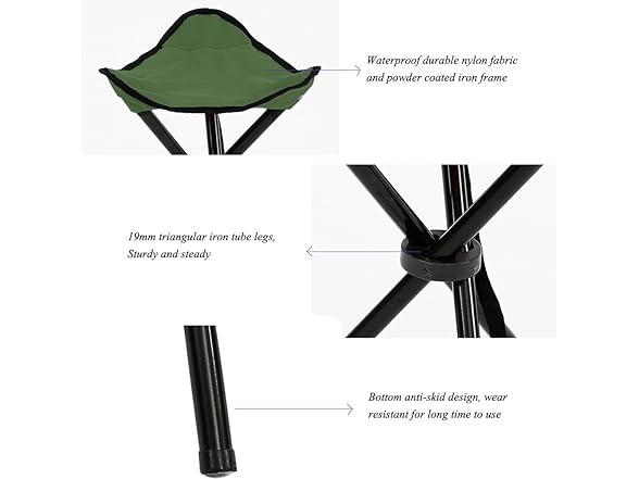 Messar Portable Stable Travel Chair Tri-Leg Stool - 8.6x8.6x11.8inch