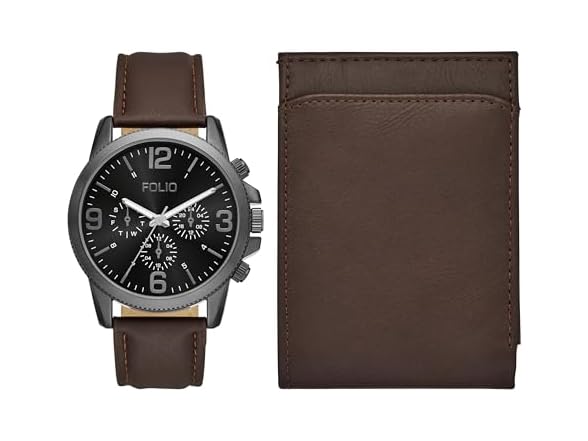 Folio Men's Three-Hand Brown Strap Watch (Model: FMDFL6085)