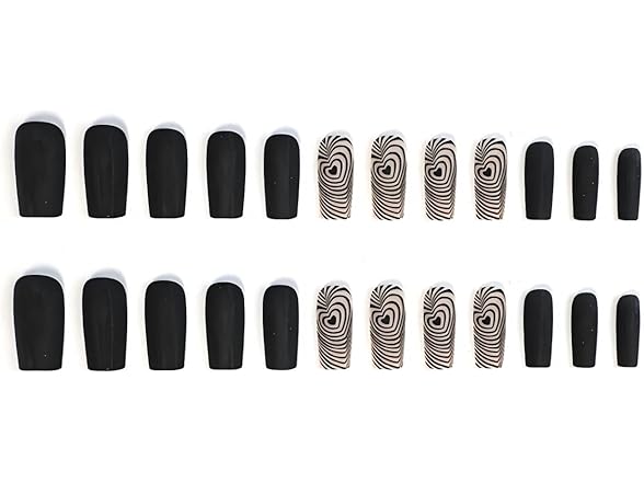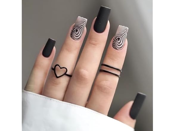 • (1) S FORBELOVED NAILS,White And Black Matte Press On Nails,Medium Square Glue On Nails,Full Covered With Heart Love Print,Chill False Nails For Women And Girls,12 Sizes-24Pcs with Glue,(White-MS),FOB