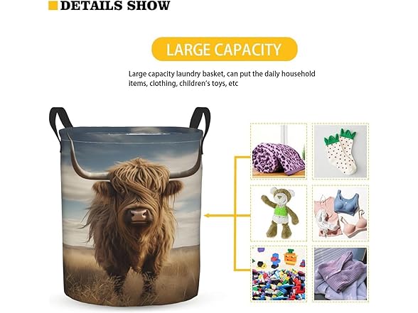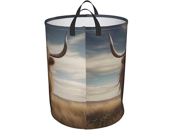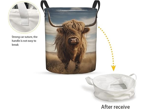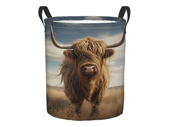 Foruidea Highland Cow Laundry Basket,Laundry Hamper,Collapsible Storage Bin, Oxford Fabric Clothes Baskets,Nursery Hamper For Home,Office,Dorm,Gift Basket