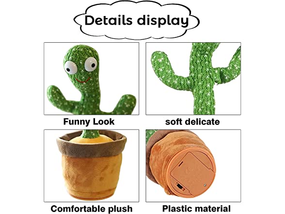 - 120 Popular Songs--Cactus toy comes with 120 of the most popular songs of the moment, and there is always one you like. Press the function button on the flowerpot, the song can be switched at will, suitable for both men and women of all ages.