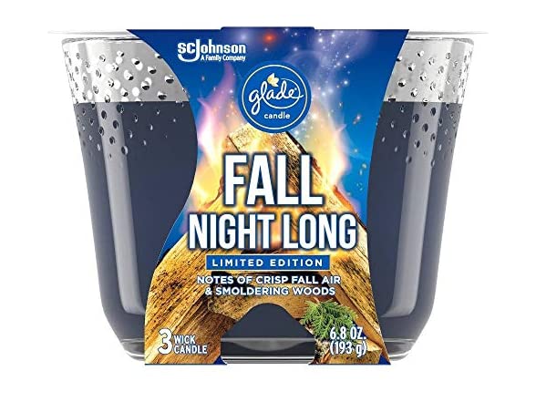 In the Box: (1) Glade Candle, Fragrance Candle Infused with Essential Oils, Air Freshener Candle, 3-Wick Candle, 6.8oz (Fall Night Long)