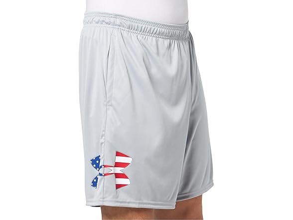 Under Armour Men's Freedom Tech Big Flag Logo Shorts, (011) Mod Gray Light Heather / / Red, Small