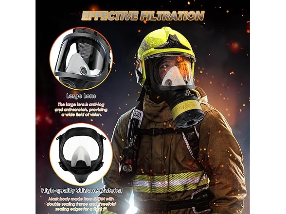 - 【Large View & Speaking Diaphragm】The gas masks survival nuclear and chemical adopts a speaking diaphragm for smoother voice transmission. Welding Respirator with Large Lens provides a wide field of view for excellent visibility; The outer layer is scratch-resistant and the inner layer is anti-fog. Full face survival Respirator and adjustable strap fit most head sizes.