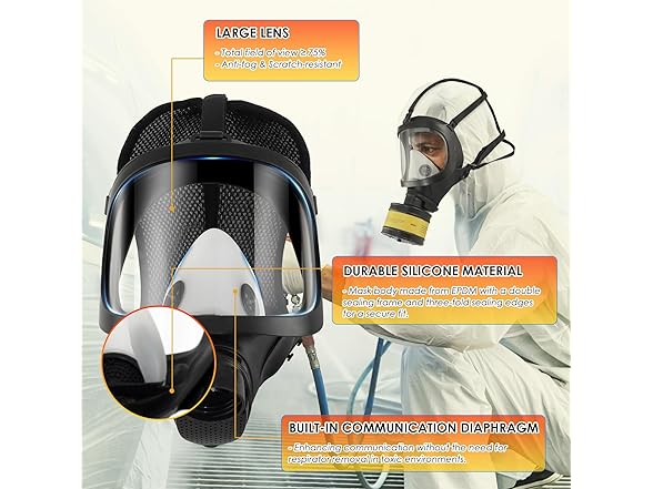 - 【Ergonomically Designed Respirator】Have you been bothered by wearing an uncomfortable Respirator squeezing your face? The back of our full face respirator is made of full silicon material, the advantage is that it fits the face very well, it is smooth, soft, and has a strong seal, and the skin feels very good to the silicone!
